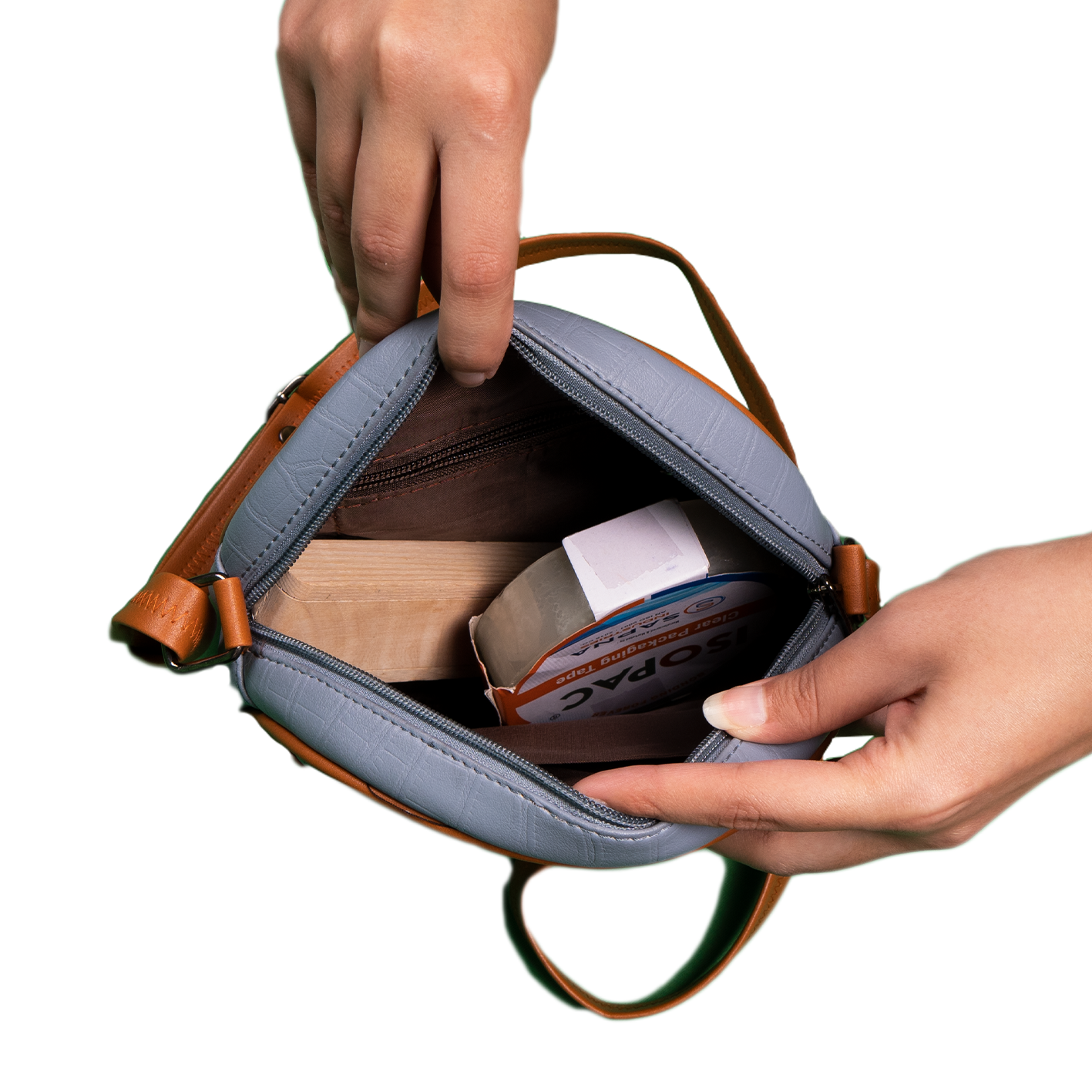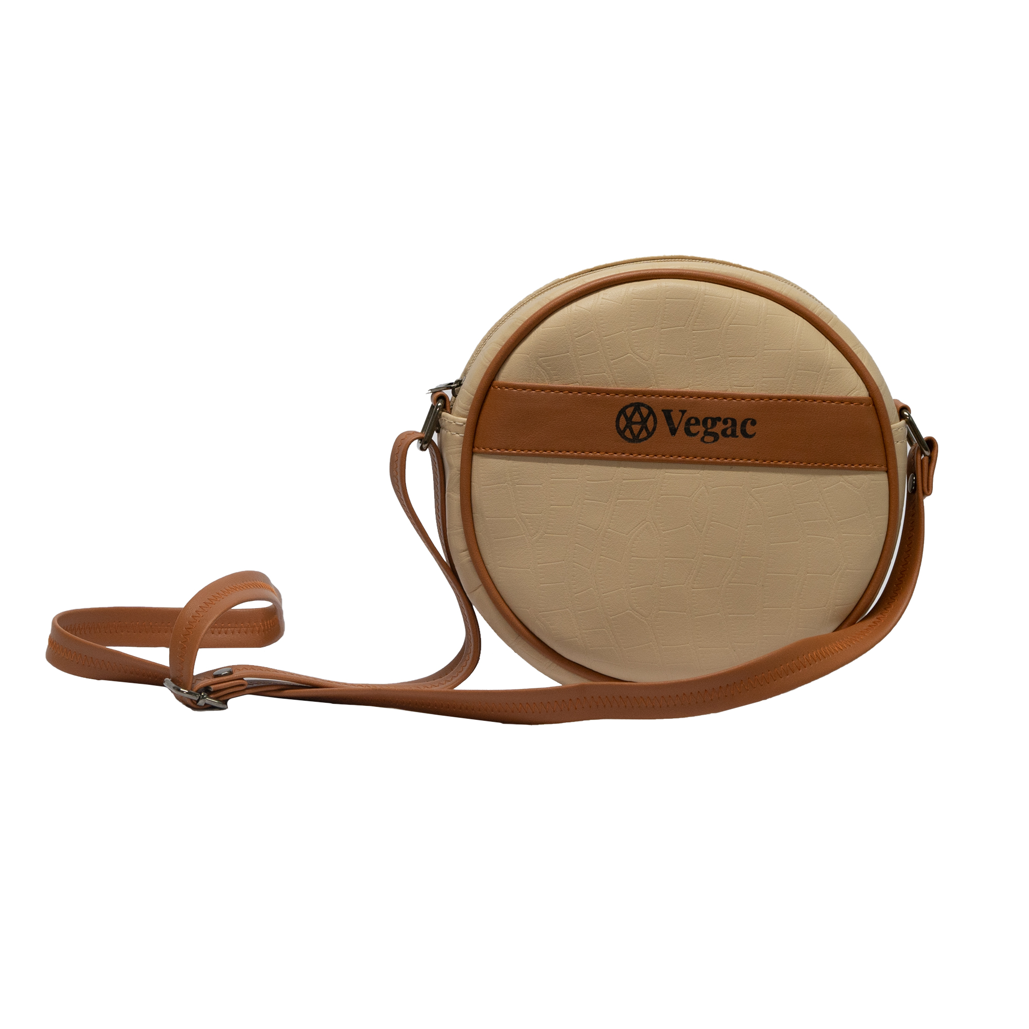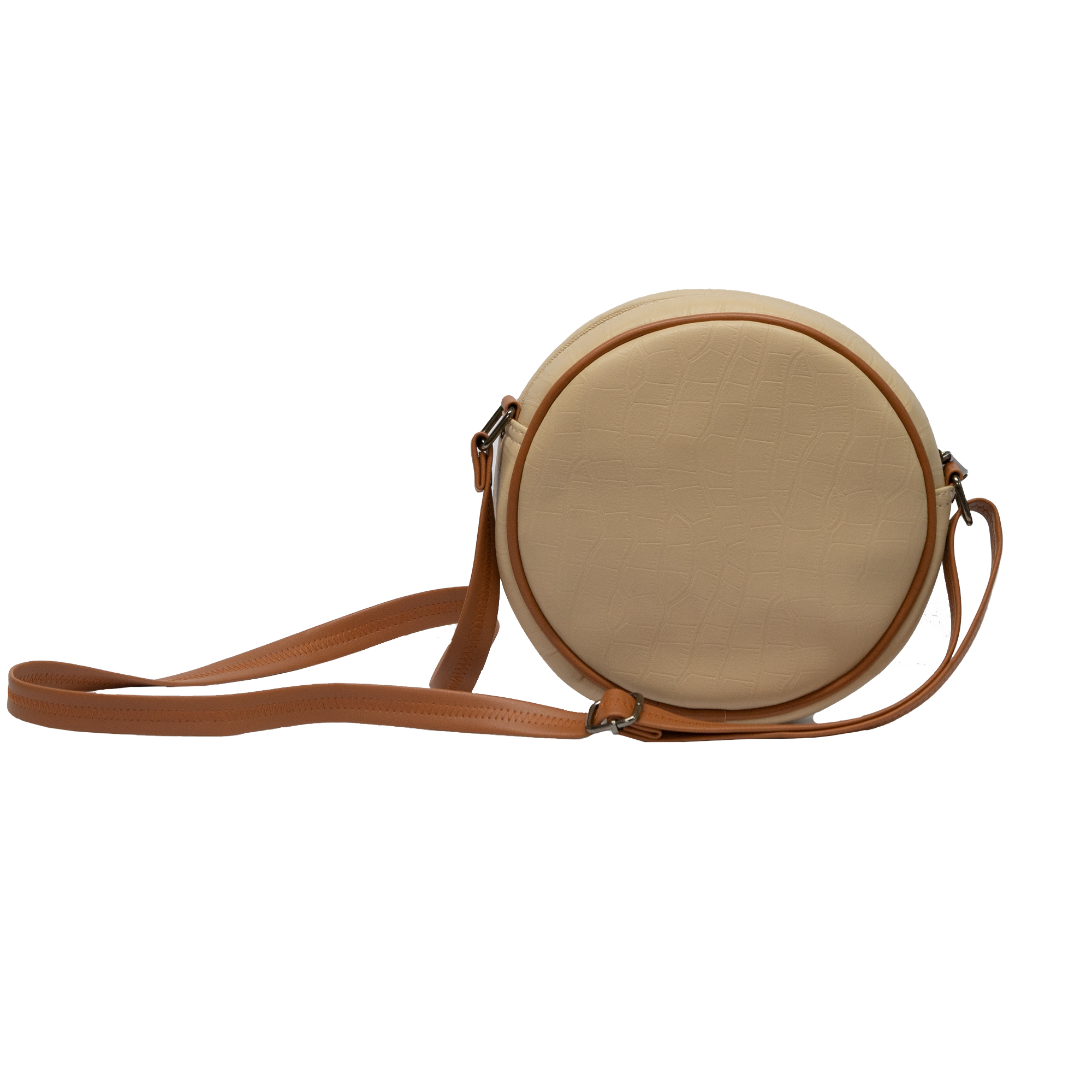 Get more of what you love with this Beige croc self designed round sling bag made from vegan leather and highlighted with tan strip With handy pockets and a comfortable strap, it’s perfect for carrying all your essentials.Wear it the way you want: Shoulder or crossbody