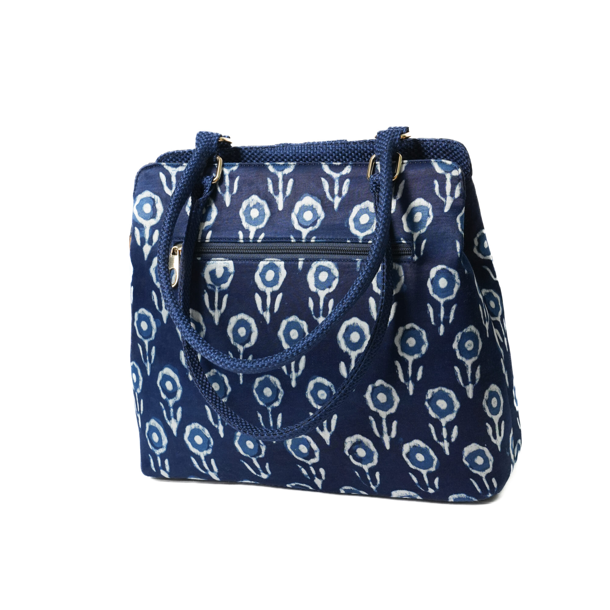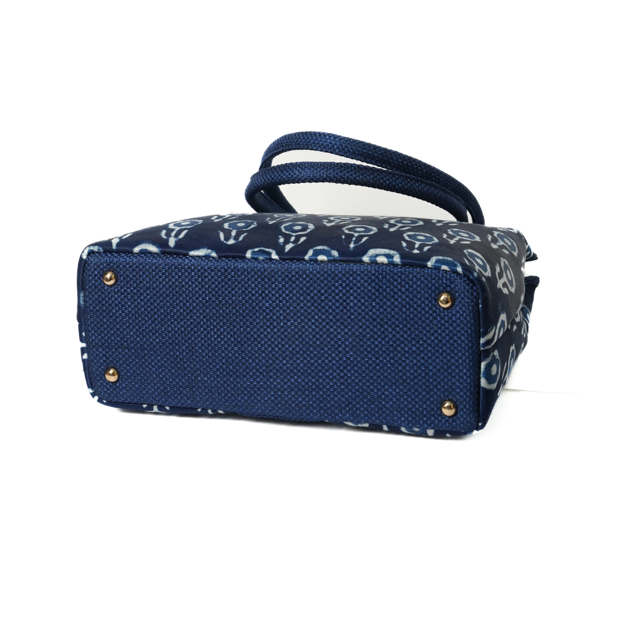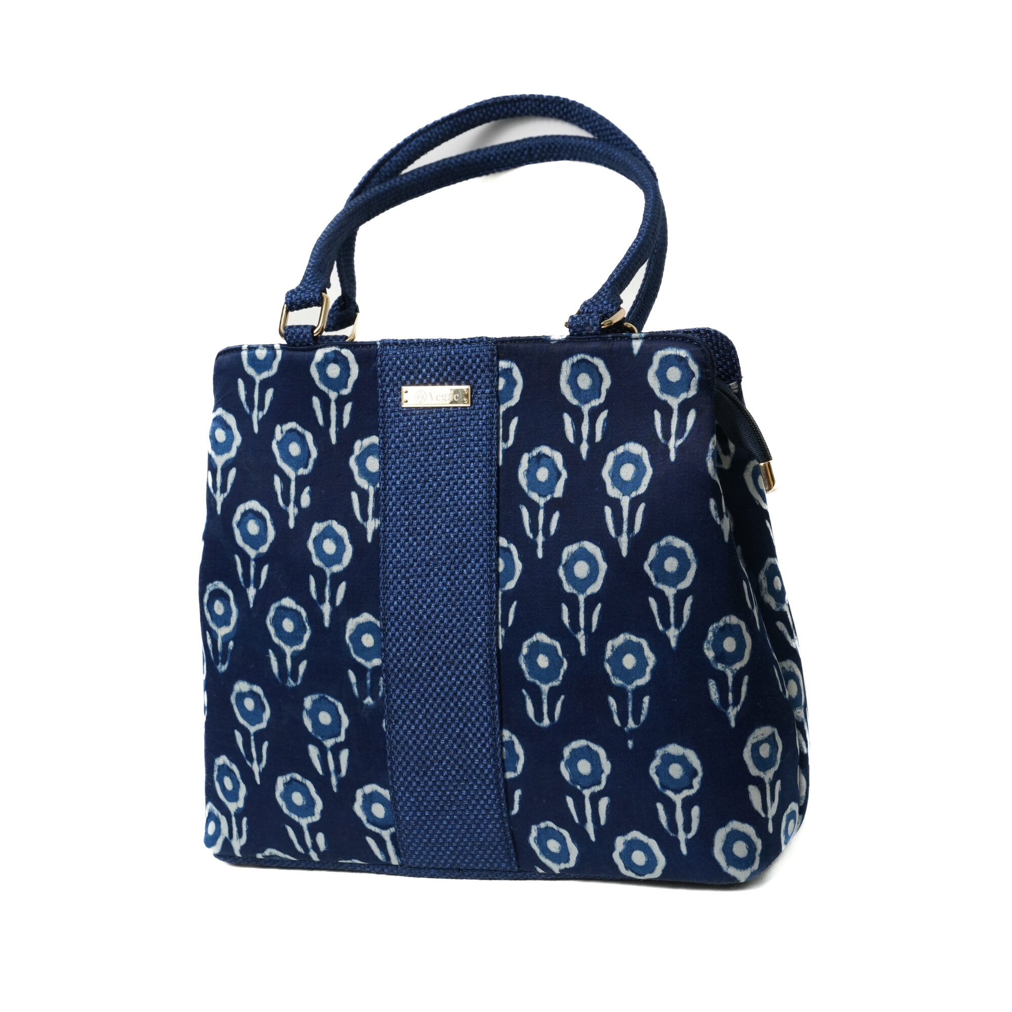 Multi color Block Mashru & Superfine Jute Handbag – Indigo Blue