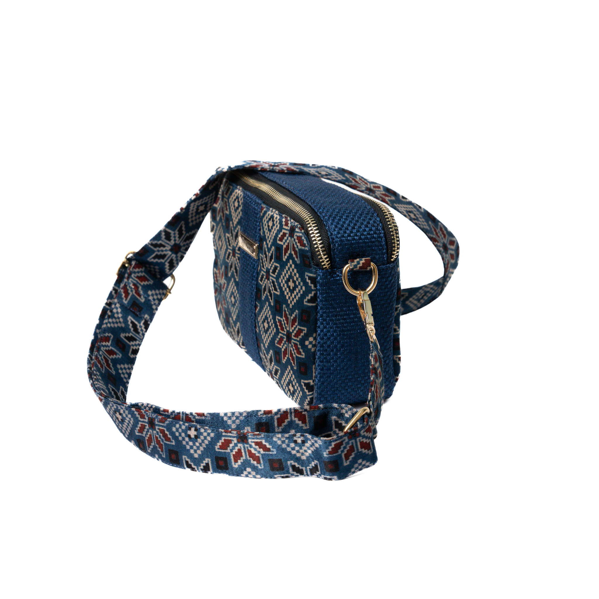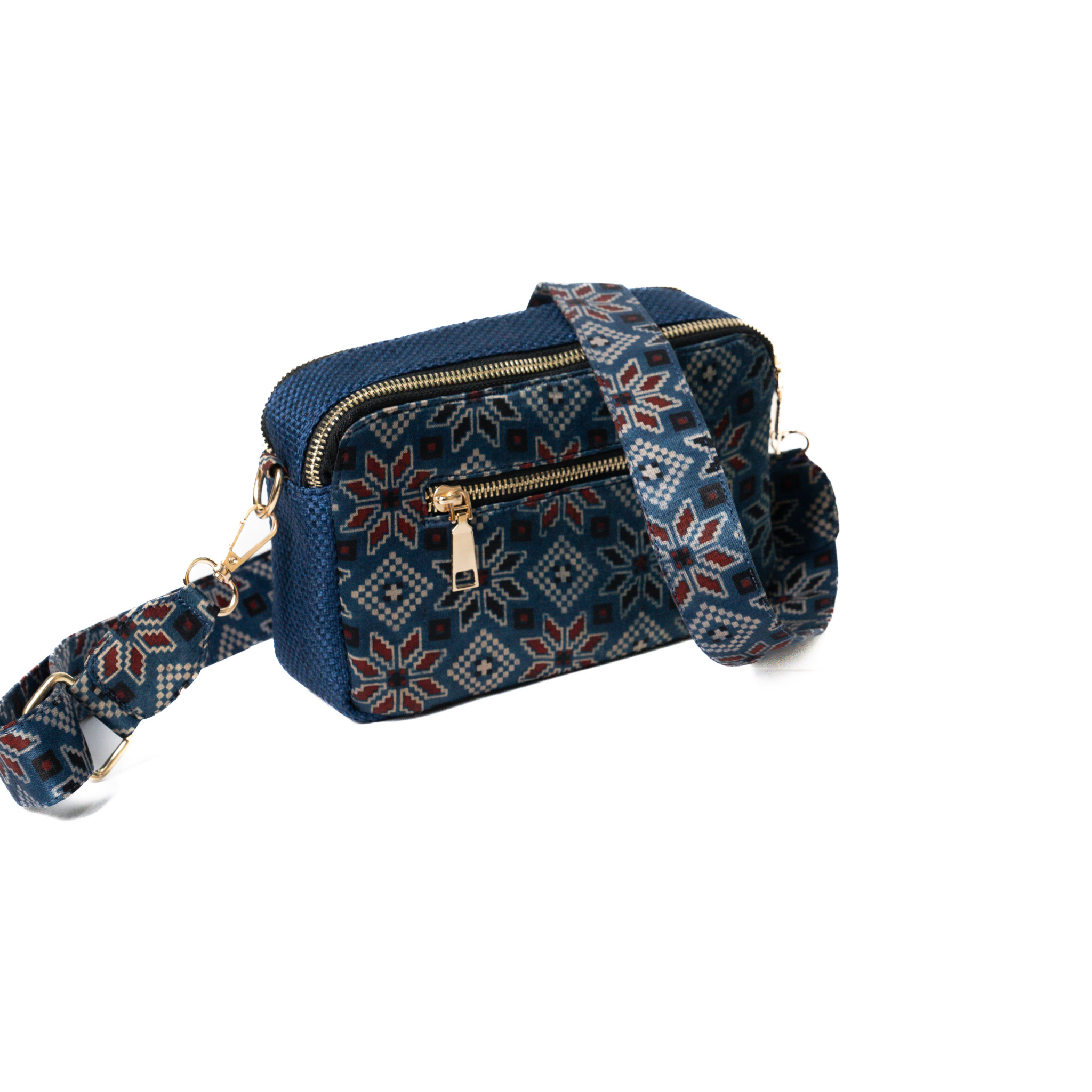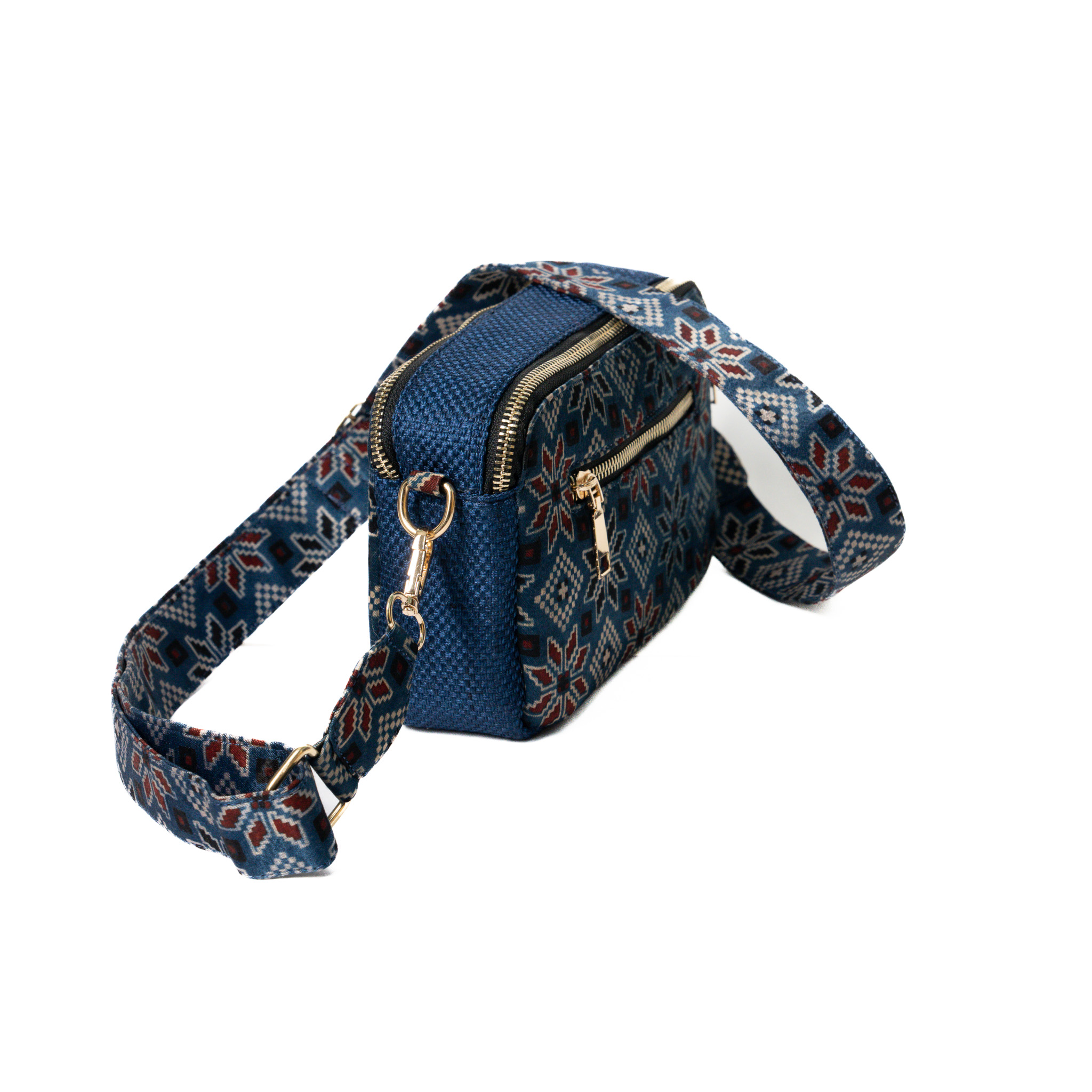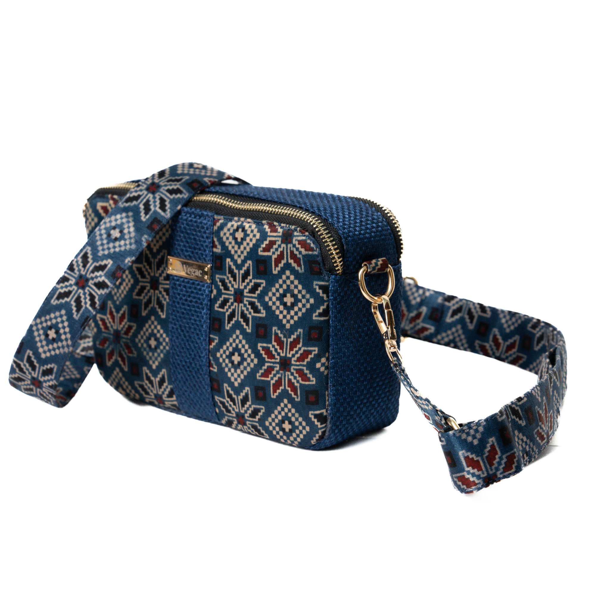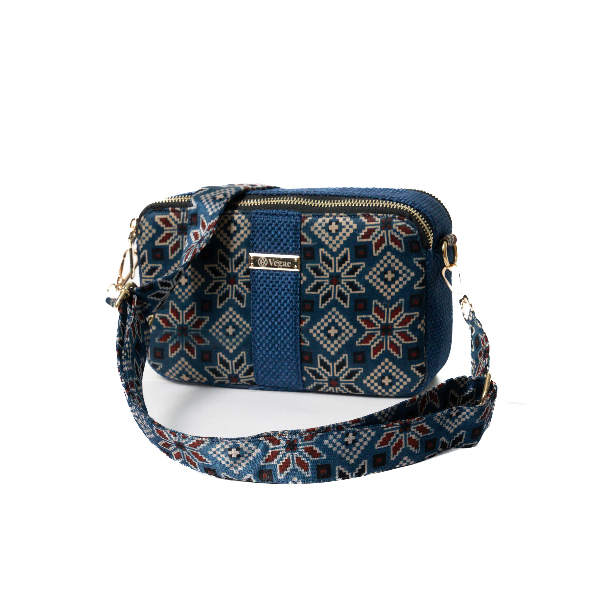 Need a charming out of the box sling bag!? Vegac has designed this super fine jute sling bag with an eye catching multi color block print Mashru cloth in the shape of a rectangular box! It also very sturdy since its made with brass zipper and digital printed satin thick sling which is fashioned to make your casual look more vibrant.
