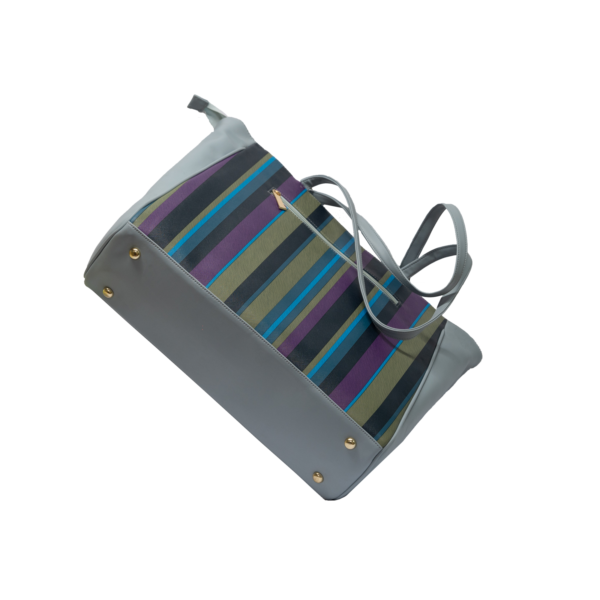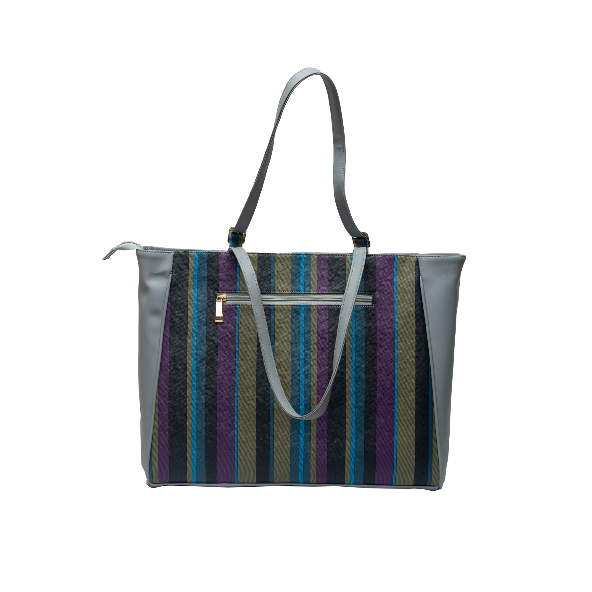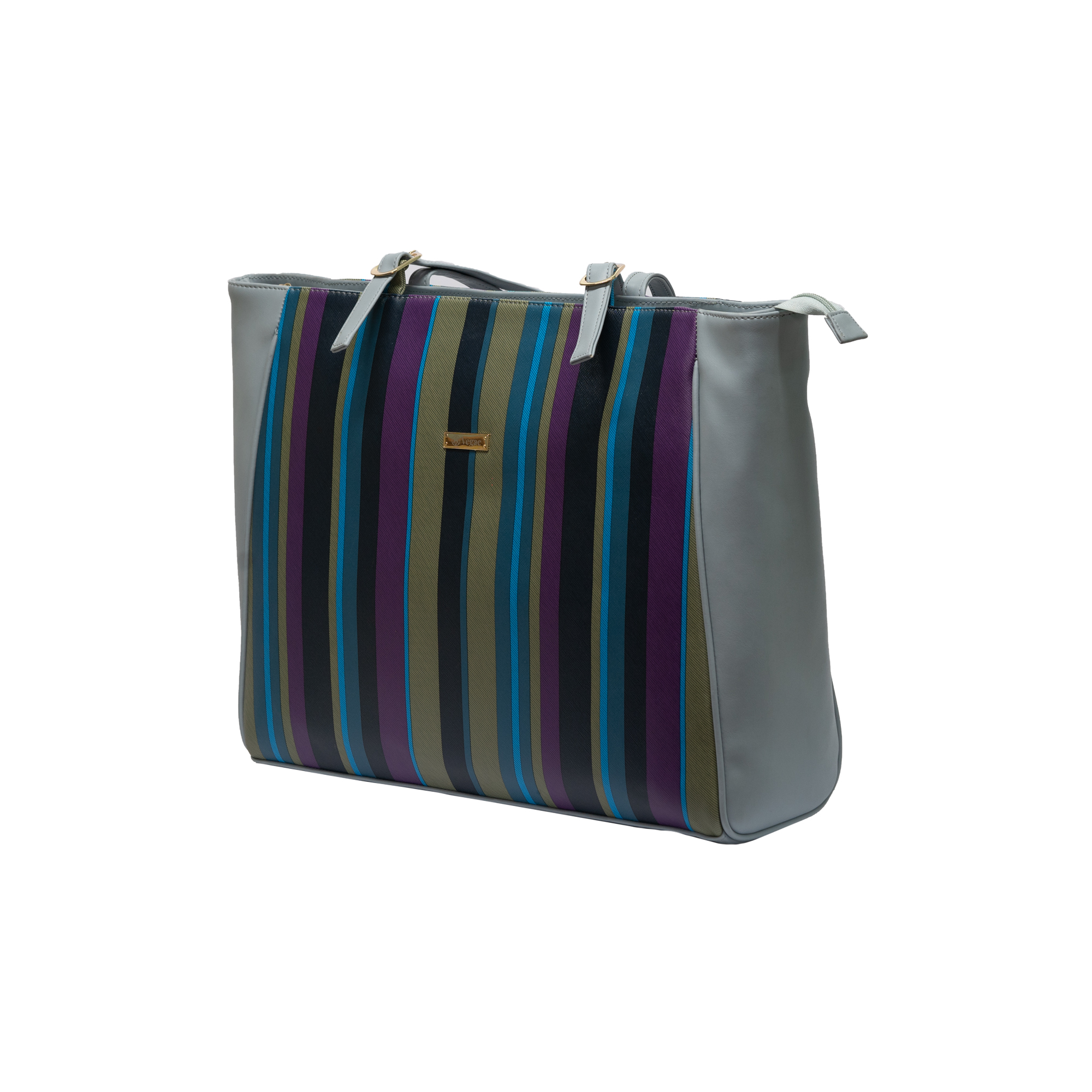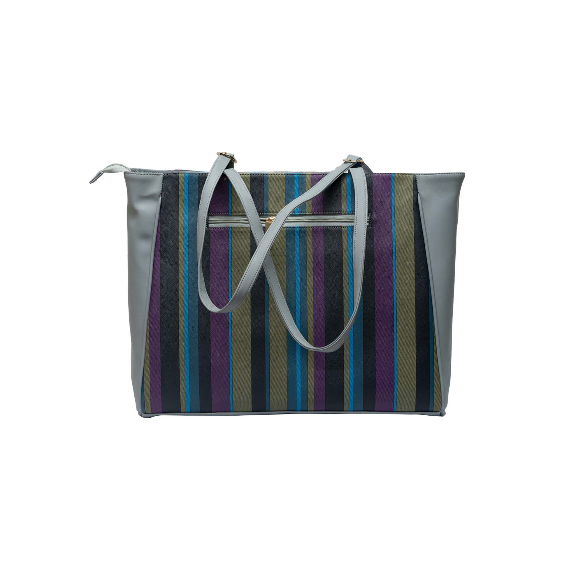 This chic everyday multicolors striped with sky blue base office shoulder bag houses your laptop and all essentials for the day. It has two spacious compartments, a seperate cushioned laptop compartment and organiser for phone, charger, pen, key holder,bottle holder, etc,.. It will be your favorite accessory to stay organized every day of the week.