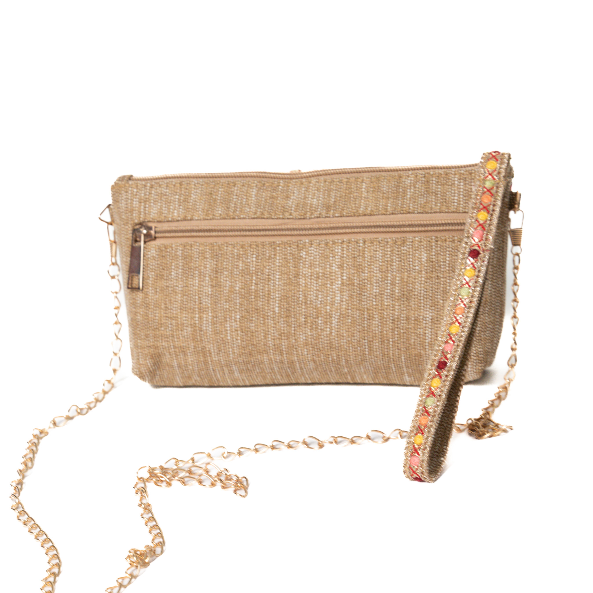 Looking for a ethnic casual pouch/sling which keeps your hands free while shopping!? It’s made of super fine premium Beige color jute with vibrant embroidery lace to bring out the color in sober you. It’s a perfect petite accessories for women of all ages and can be carried for all occasions.