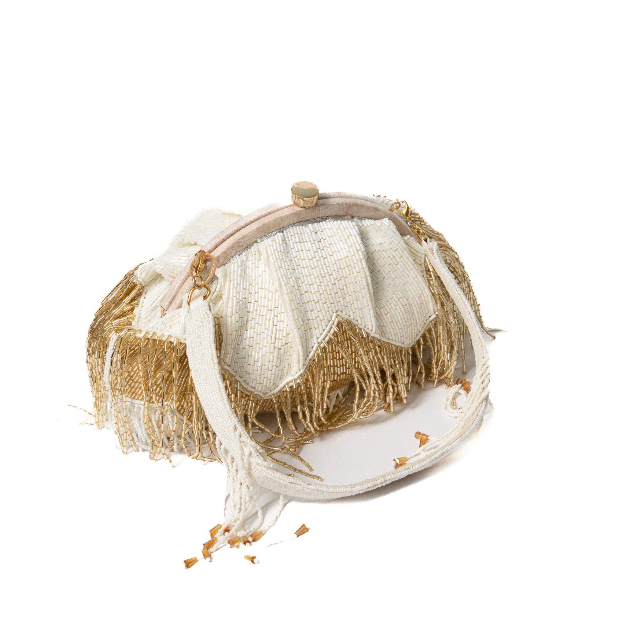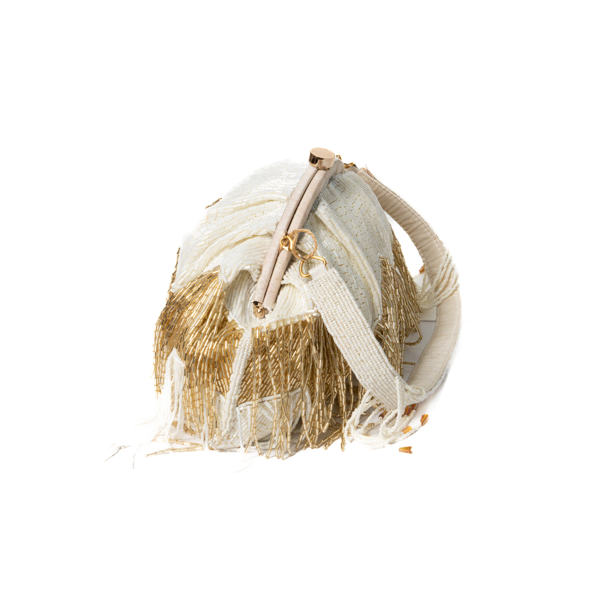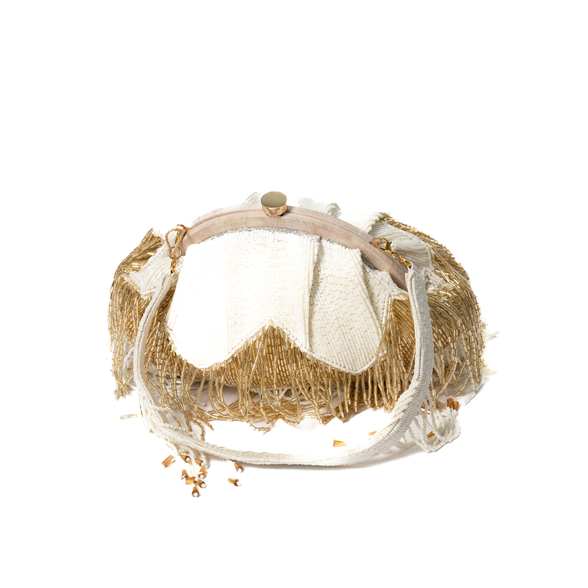 Sequinned beads/pearl work Chandelier Clutch – Off white