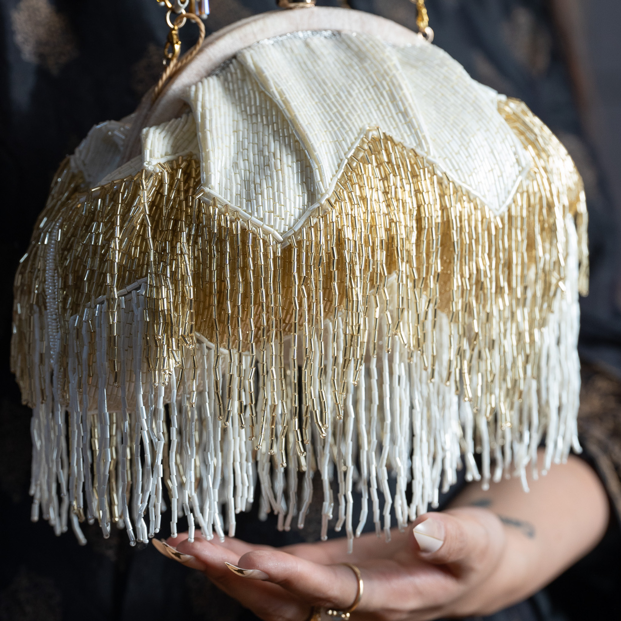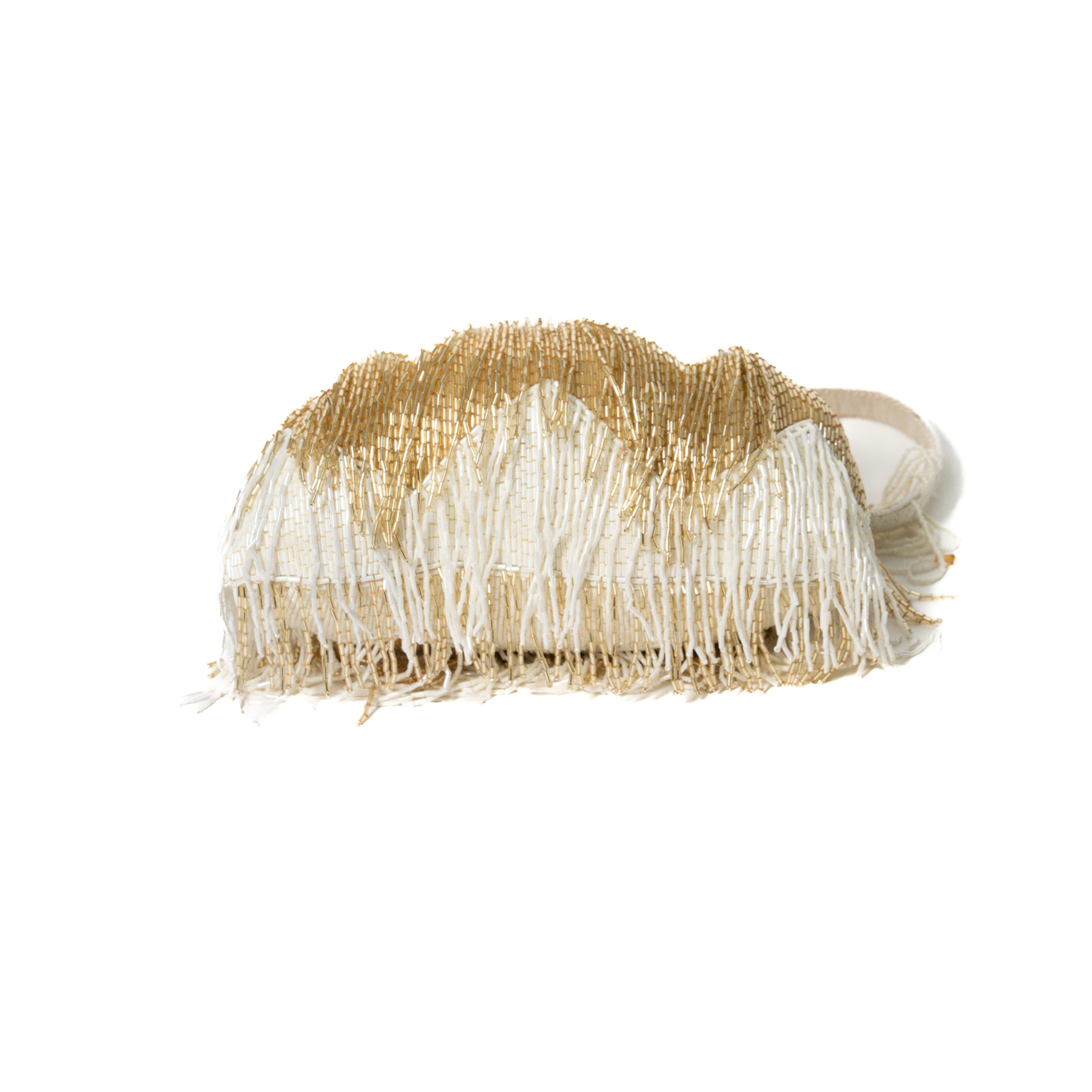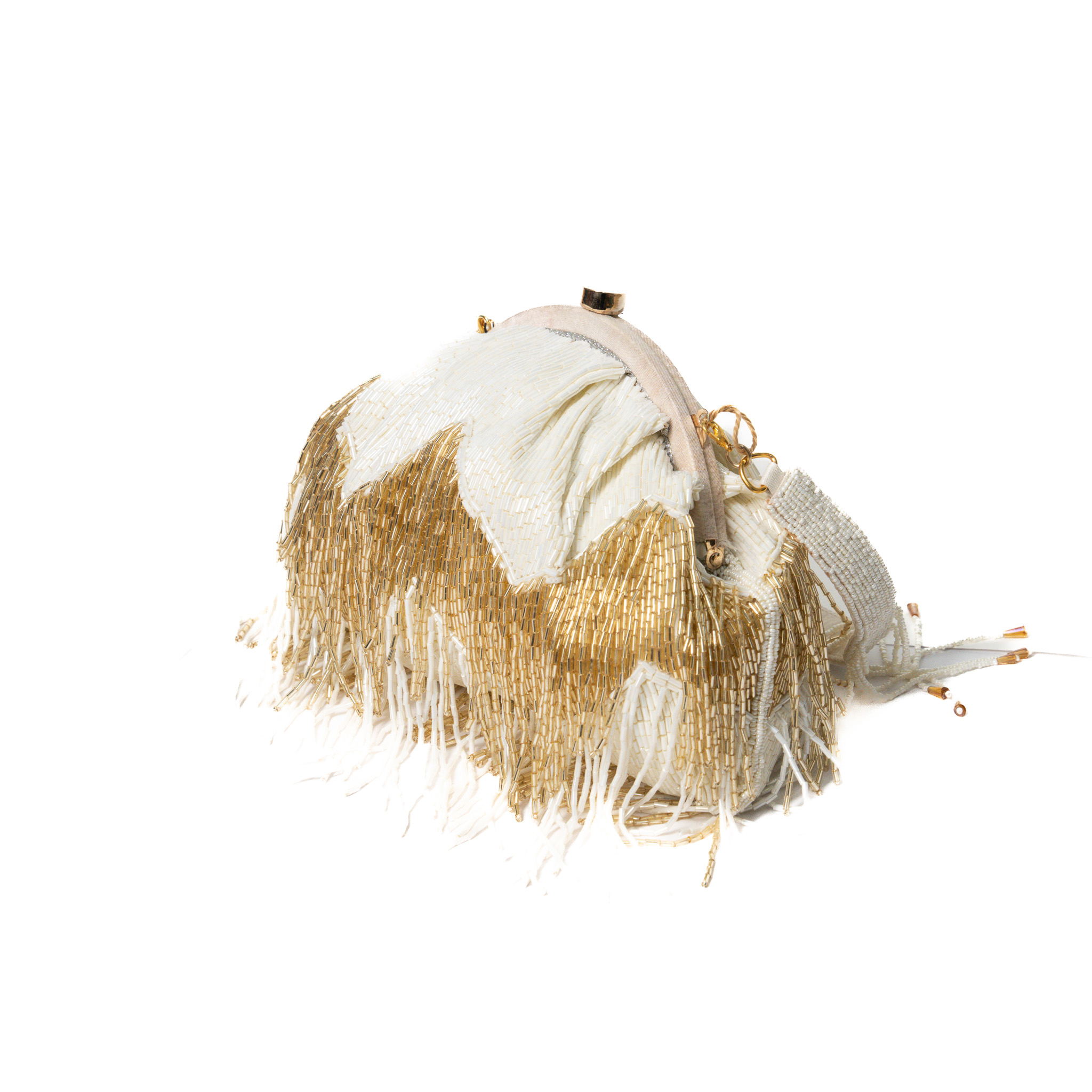 Sequinned beads/pearl work Chandelier Clutch – Off white