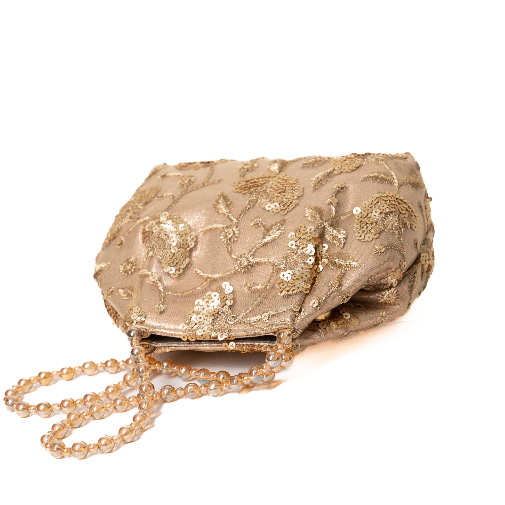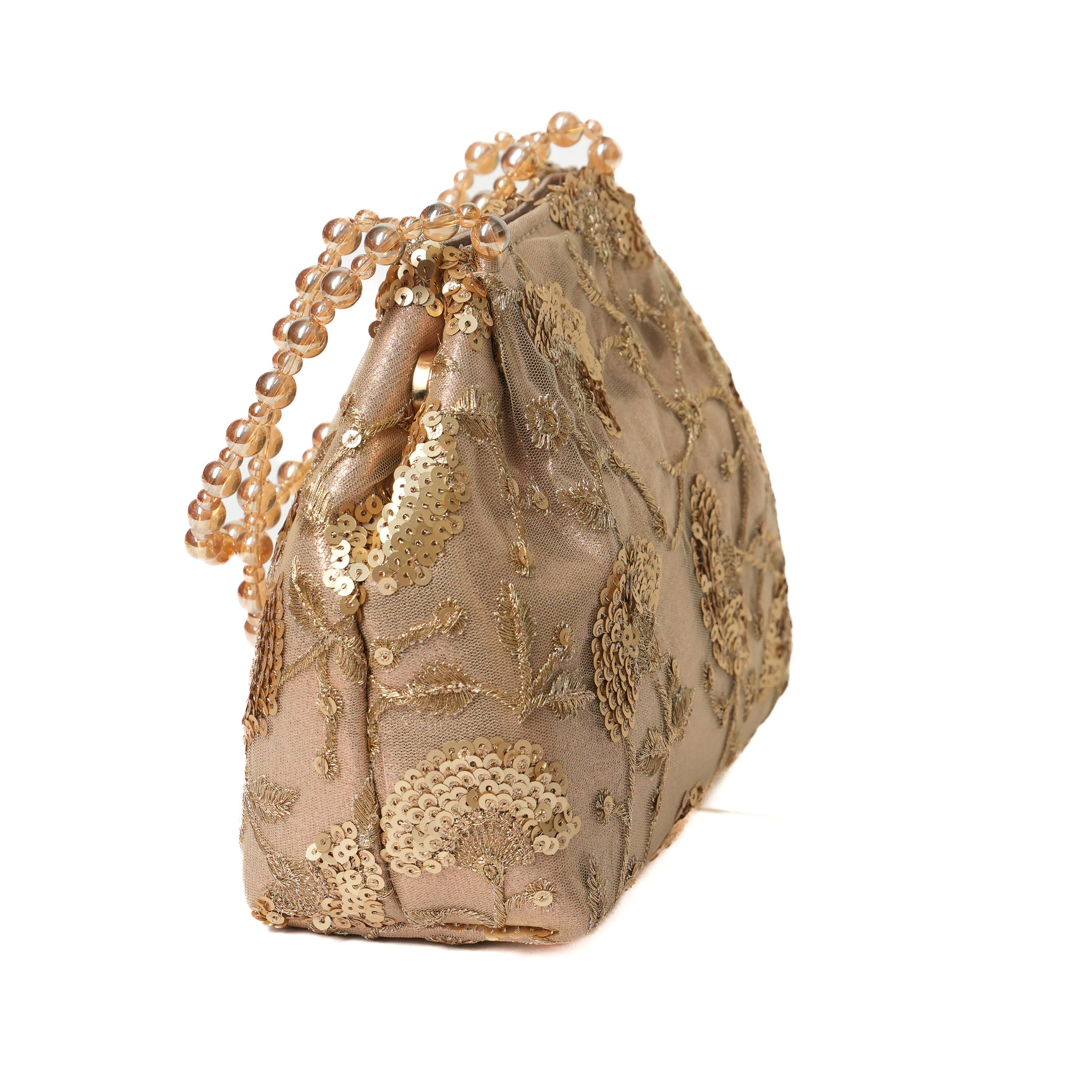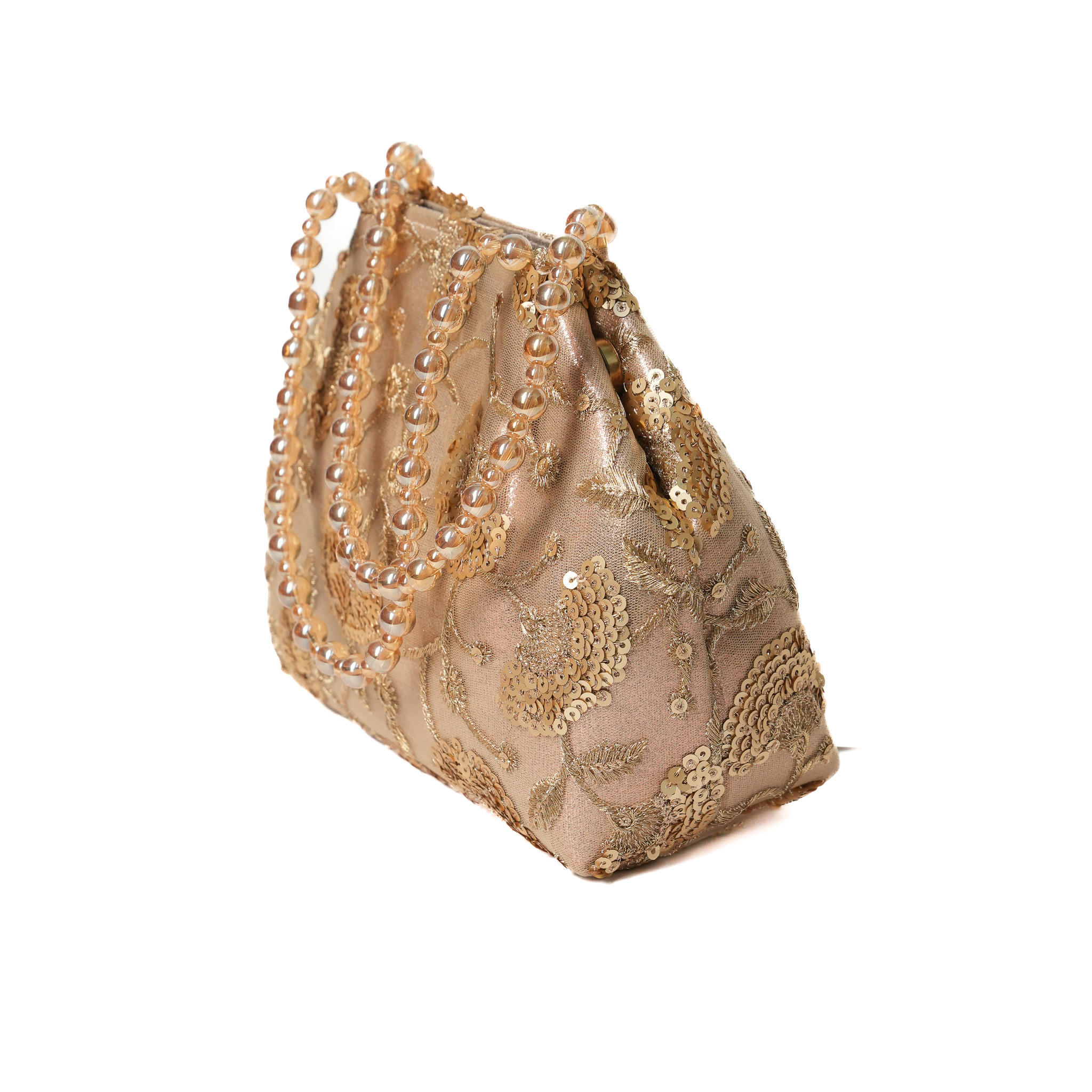 Perfect accessories for your wedding/festive season. This clutch has got an overall sequinned floral embroidery along with pearl hand straps to give it the exquisite look