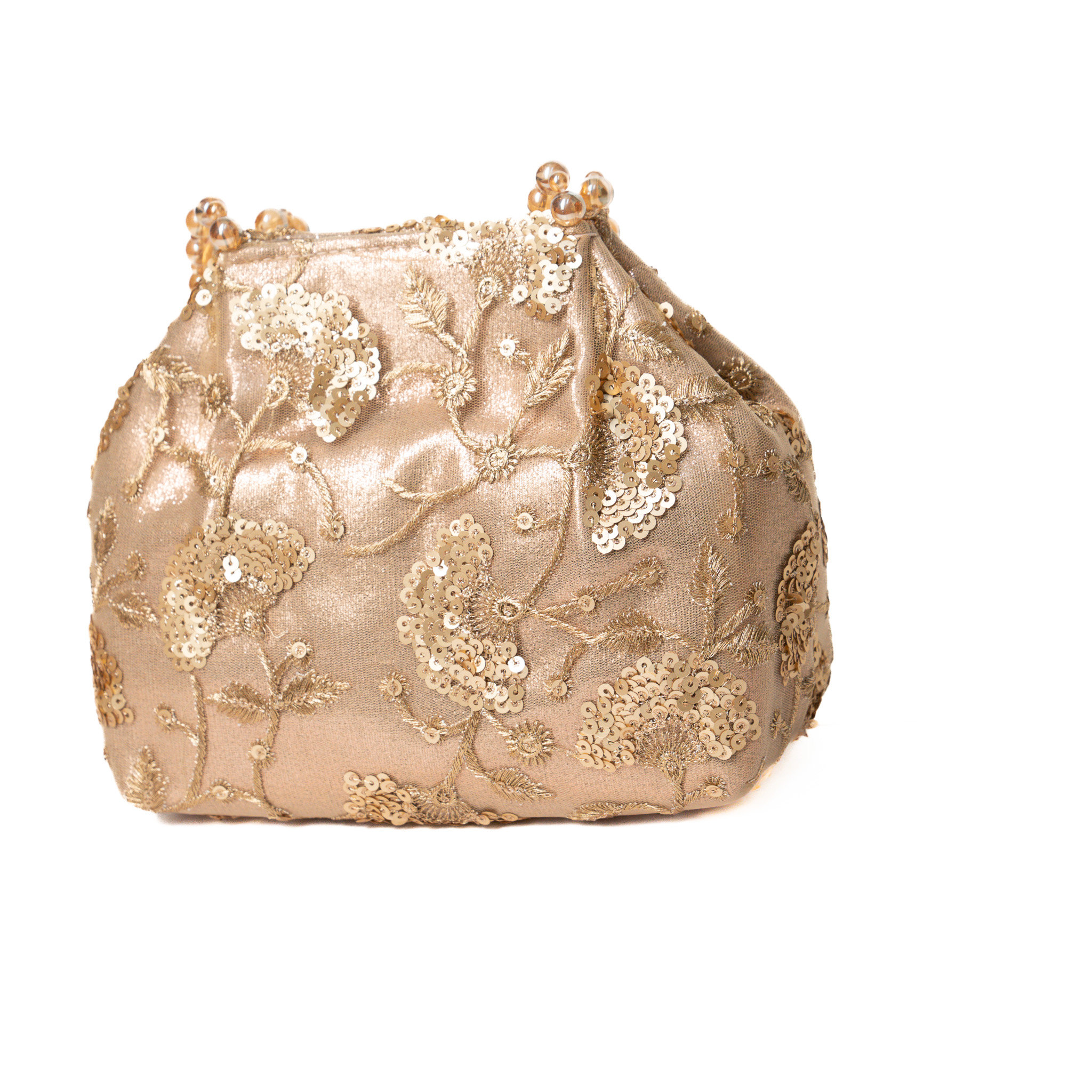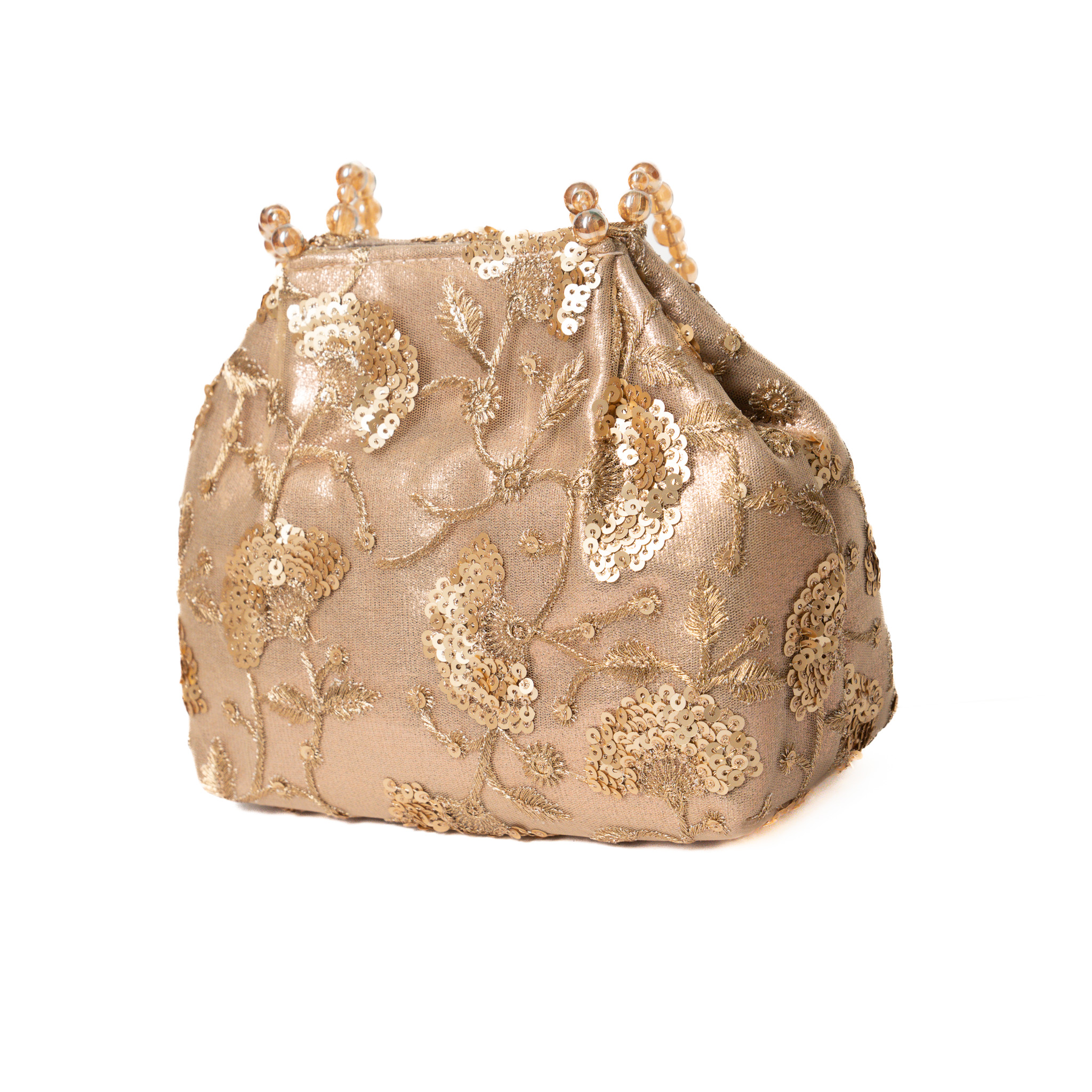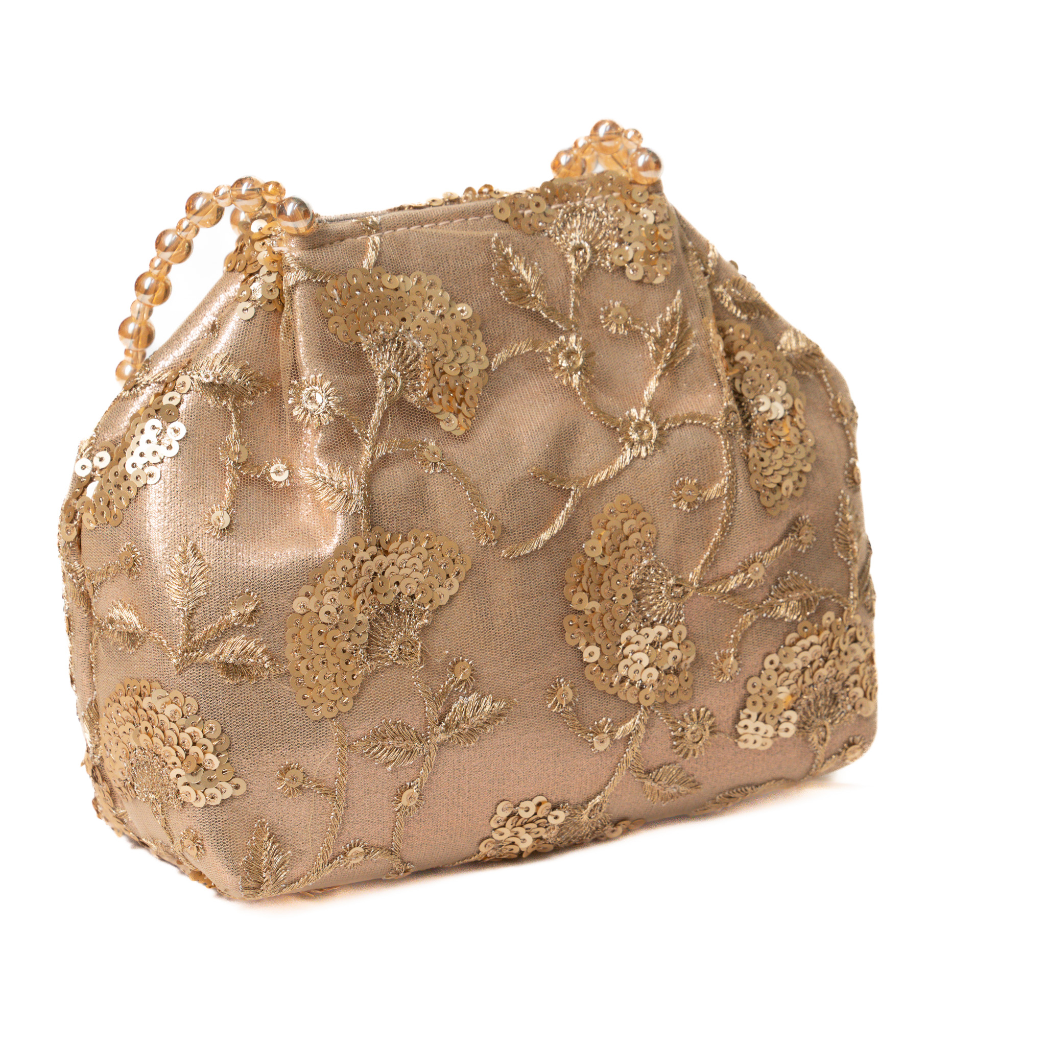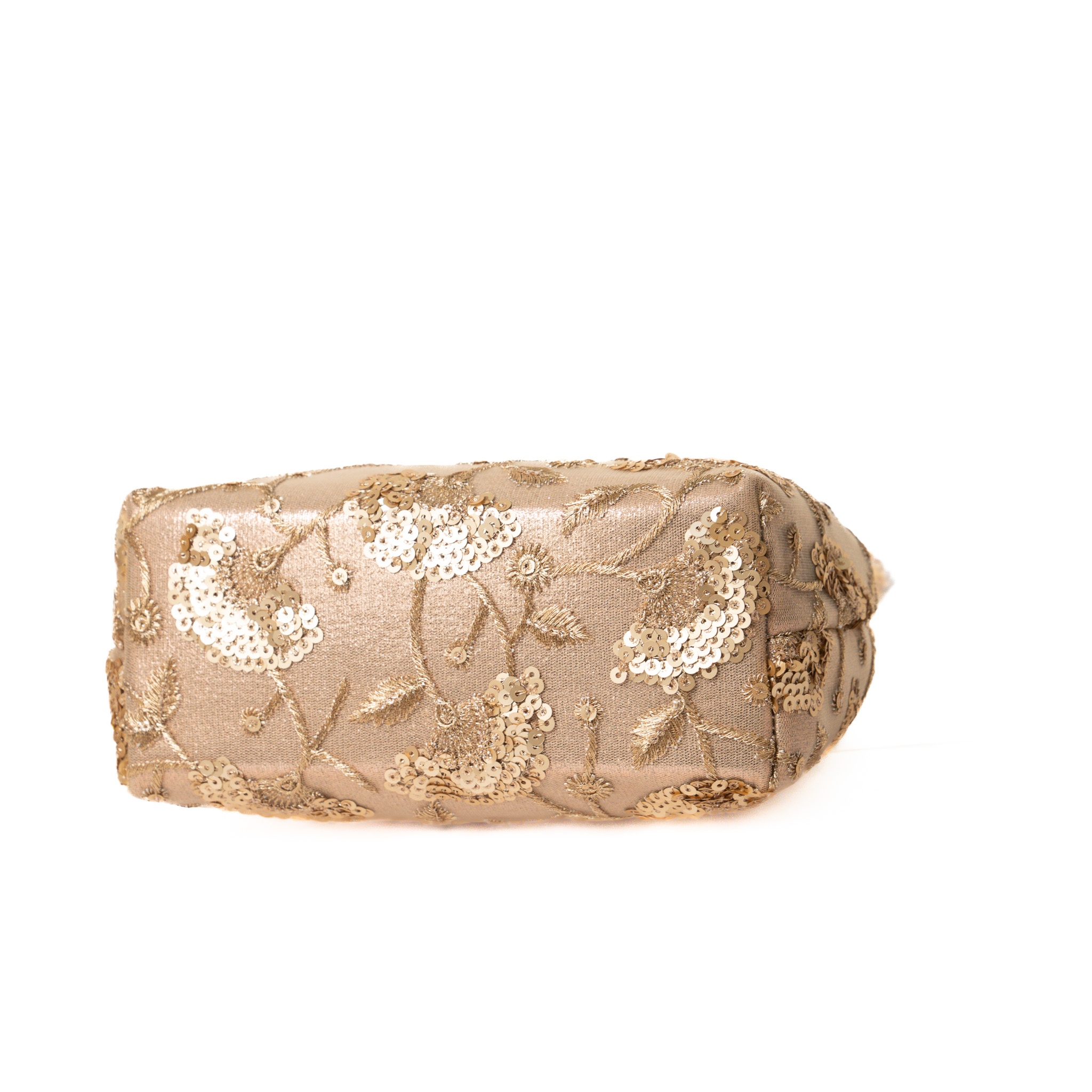 Perfect accessories for your wedding/festive season. This clutch has got an overall sequinned floral embroidery along with pearl hand straps to give it the exquisite look